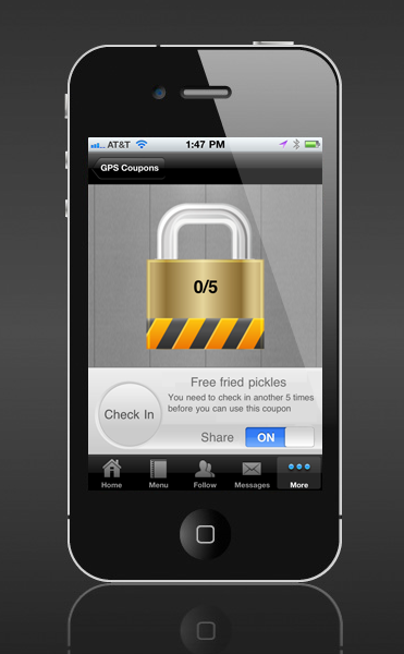 Create mobile coupons for your customers to unlock by "checking in" at your business.