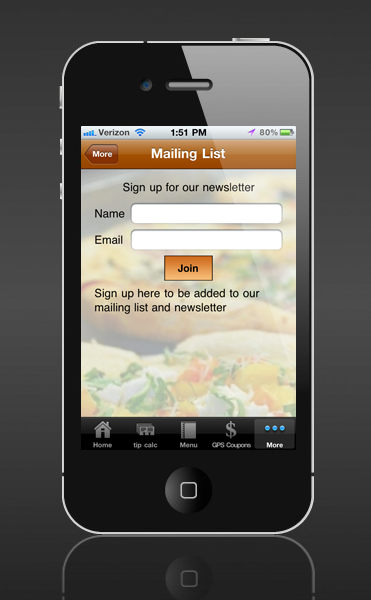 Stay in contact with your customers by gathering names and email addresses directly inside your application.